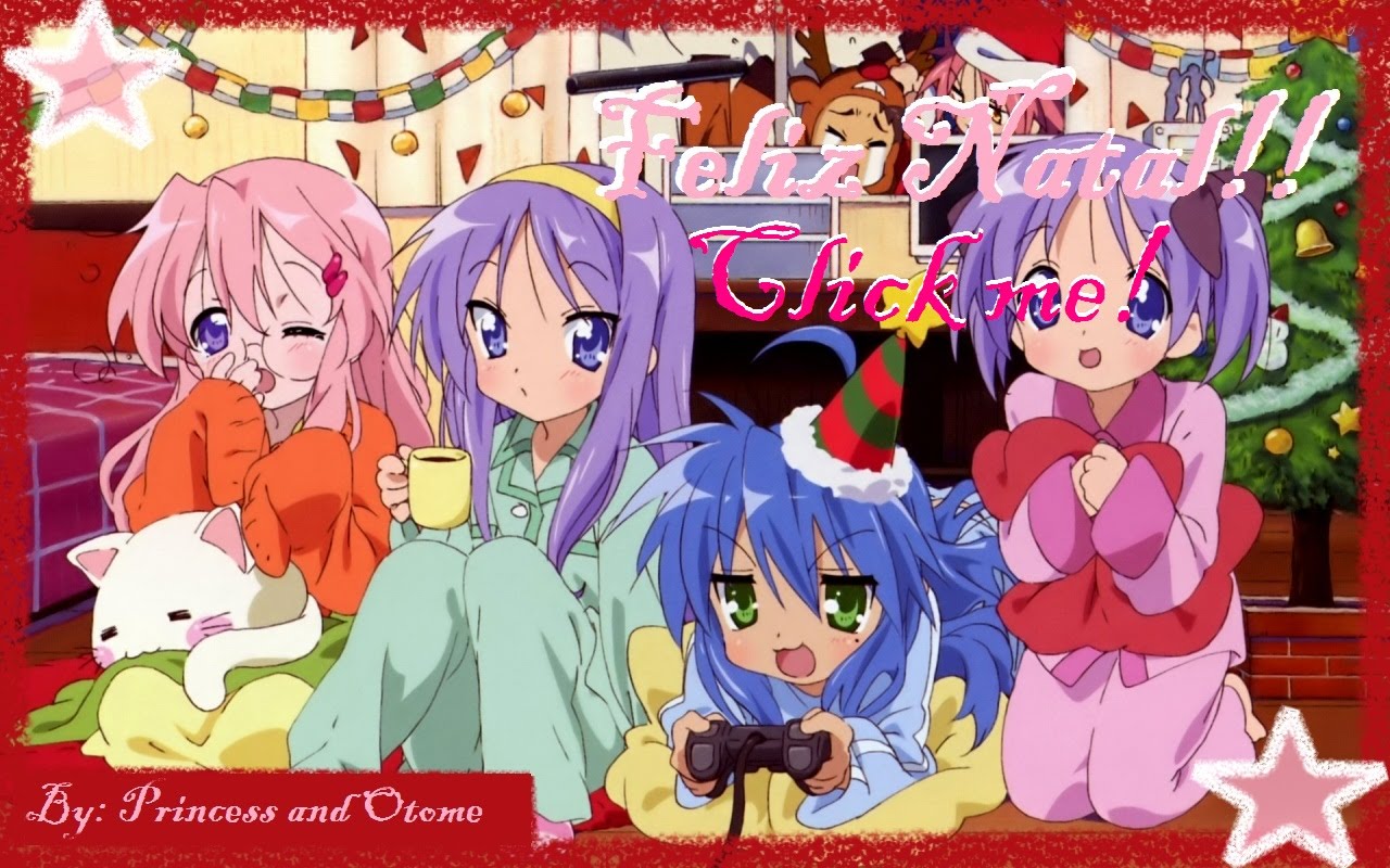 Está chegando! Então,nós, Aline e Yu-chan queremos desejar um ótimo natal e ano novo á todas (os) leitores (as), espero que tenham boas férias e zoem muito nesse final de ano^^ , ganhem muitos presentes, e comprem muitos mangás, maquiagens, roupas, e vamos lembrar que é uma época de reencontros e festas ( comida até onde os olhos podem alcançar, ou até onde a barriga aguentar ). Já que é final do ano e estamos todos livres de escola (pelo menos pra quem nao ficou de recuperação), vamos fazer cosplays de natal, fazer amigo secreto, ou inimigo chocreto, e como é uma época para relaxar, vamos na praia, viajar... ou para pessoas como a Yu-chan: ficar em casa desenhando e lendo mangá (e baixando animes na internet) ou como a Aline: ficar na internet dia e noite, dia e noite dia e... Mas é claro com algumas idas ao shopping! E tambem para comemorar o ano novo, vamos nos reencontrar! Vamos poder acampar, dormir em barracas (espero que não chova).